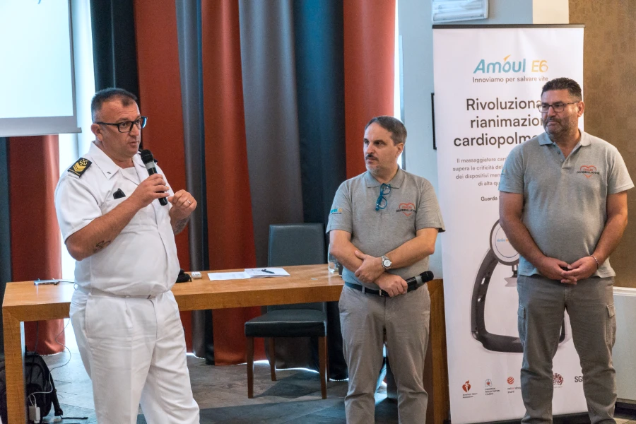 Un momento particolarmente toccante è stato dedicato alla condivisione delle testimonianze di professionisti sanitari, ricercatori universitari e operatori del soccorso in mare della Capitaneria di Porto. Questi esperti hanno raccontato le loro esperienze dirette con l’utilizzo del massaggiatore cardiaco automatico Amoul® E6 nelle loro pratiche quotidiane, sottolineando l’impatto positivo che il dispositivo ha avuto sulla loro capacità di salvare vite.