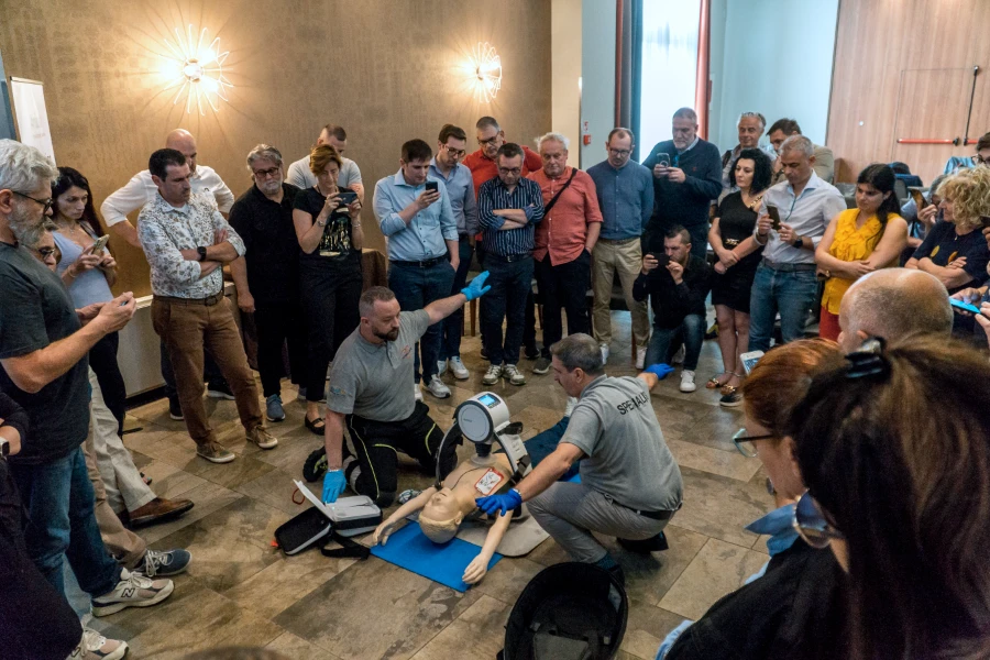 Uno dei momenti più coinvolgenti è stata la dimostrazione pratica del dispositivo. I partecipanti hanno potuto osservare l’Amoul® E6 in azione, utilizzato in simulazioni di emergenze mediche. Questa sessione ha evidenziato la facilità d’uso del massaggiatore cardiaco, nonché l’efficacia della compressione toracica automatizzata, elementi chiave che possono fare la differenza tra la vita e la morte in situazioni critiche.